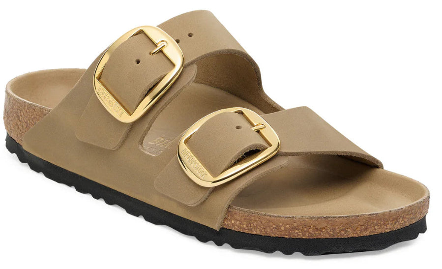 The iconic Birkenstock Arizona gets a bold update with the Big Buckle edition, featuring oversized pin buckles for a refined yet minimalist look. Crafted from thick nubuck leather with an open-selvage finish, it combines premium materials with timeless style. The anatomically shaped cork-latex footbed, lined in leather, offers personalised comfort and support, while the lightweight EVA sole ensures flexibility and durability. Made in Germany.
