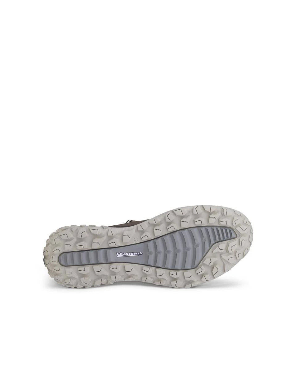 Reconnect with nature with the ECCO ULT-TRN, a modern take on a leather hiking shoe. Contemporary styling meets innovative, robust performance, including the PFC-free waterproof membrane. Being in the wild feels even more invigorating in a true hiking product featuring a state-of-the-art Michelin rubber outsole supplying multi-directional grip, along with a lightweight PHORENE™ midsole for radical bounce. For a lighter, modern look, the shoe is crafted from a mix of oiled nubuck and nubuck leathers and a premium textile.