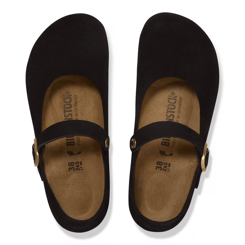 The Birkenstock Mantova is an interpretation of the classic Mary Jane in a rustic and especially comfy version. The model has an open-selvage, unlined finish which emphasizes its natural look. The upper is made from especially soft suede which hugs the foot like a second skin. Wide Fitting