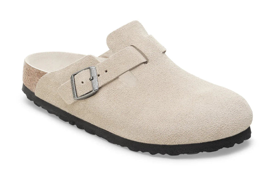 Team Birkenstock Boston Oyster Suede Tonal Soft Footbed Clogs with your fave pair of socks for added warmth and rock the 'stocks and socks' look with pride.